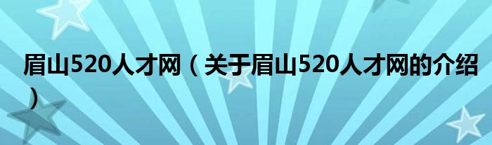 眉山520人才网(关于眉山520人才网的介绍)