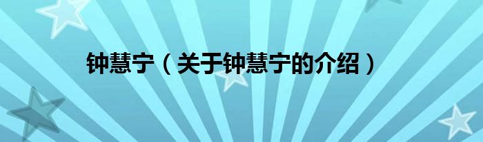 钟慧宁(关于钟慧宁的介绍)