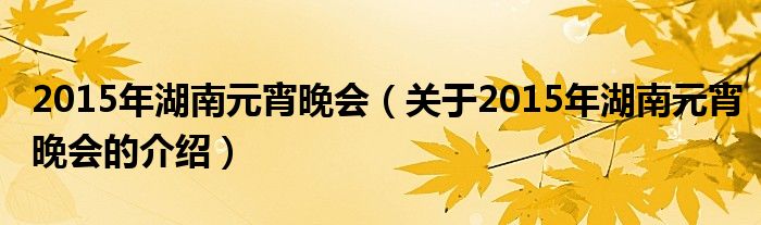 大家好,今天小乐来为大家解答以上的问题。2015年湖南元宵晚会,关于2015年湖南元宵晚会的介绍很多人还不知道,现在让我们一起来看看吧!