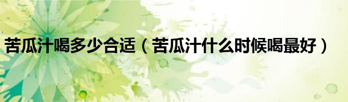 关于苦瓜汁喝多少合适,苦瓜汁什么时候喝最好这个很多人还不知道,今天菲菲来为大家解答以上的问题,现在让我们一起来看看吧!