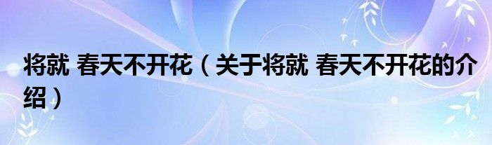 大家好,今天小乐来为大家解答以上的问题。将就 春天不开花,关于将就 春天不开花的介绍很多人还不知道,现在让我们一起来看看吧!