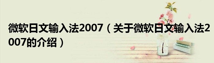 大家好,今天小乐来为大家解答以上的问题。微软日文输入法2007,关于微软日文输入法2007的介绍很多人还不知道,现在让我们一起来看看吧!