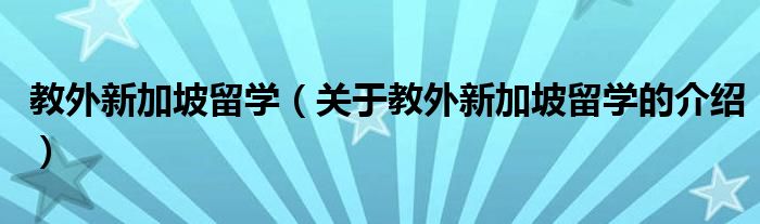 大家好,今天小乐来为大家解答以上的问题。教外新加坡留学,关于教外新加坡留学的介绍很多人还不知道,现在让我们一起来看看吧!