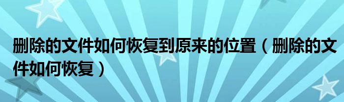 大家好,雨雨来为大家解答以上问题,删除的文件如何恢复到原来的位置,删除的文件如何恢复很多人还不知道,现在让我们一起来看看吧!