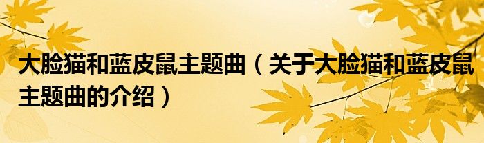 大家好,小都来为大家解答以上的问题。大脸猫和蓝皮鼠主题曲,关于大脸猫和蓝皮鼠主题曲的介绍很多人还不知道,现在让我们一起来看看吧!