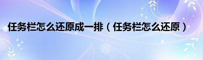 关于任务栏怎么还原成一排,任务栏怎么还原这个很多人还不知道,今天菲菲来为大家解答以上的问题,现在让我们一起来看看吧!