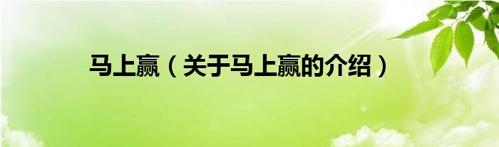 大家好,小都来为大家解答以上的问题。马上赢,关于马上赢的介绍很多人还不知道,现在让我们一起来看看吧!