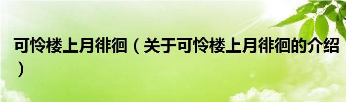 可怜楼上月徘徊(关于可怜楼上月徘徊的介绍)