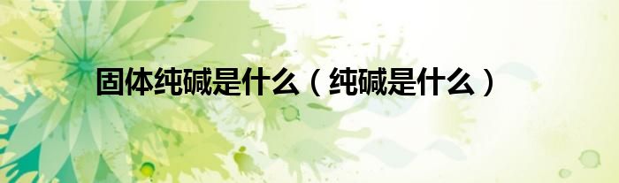 关于固体纯碱是什么,纯碱是什么这个很多人还不知道,今天菲菲来为大家解答以上的问题,现在让我们一起来看看吧!