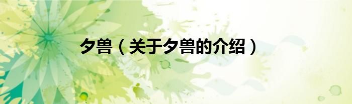 大家好,小都来为大家解答以上的问题。夕兽,关于夕兽的介绍很多人还不知道,现在让我们一起来看看吧!
