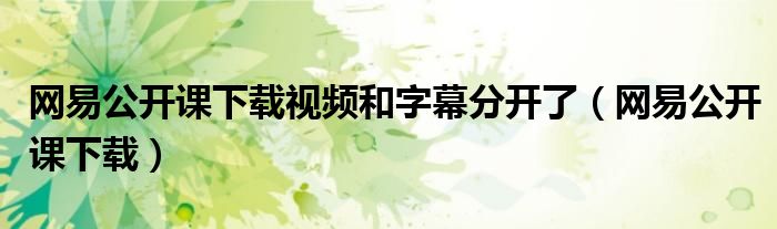 网易公开课下载视频和字幕分开了(网易公开课下载)