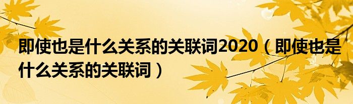 关于即使也是什么关系的关联词2020,即使也是什么关系的关联词这个很多人还不知道,今天菲菲来为大家解答以上的问题,现在让我们一起来看看吧!