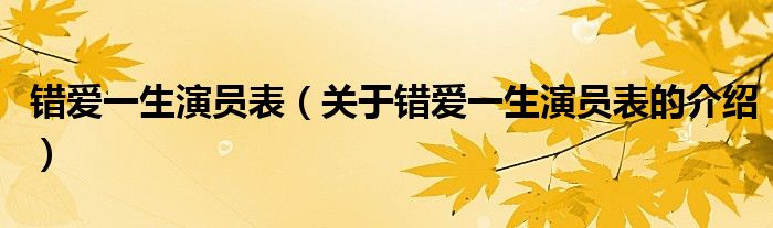 大家好,小都来为大家解答以上的问题。错爱一生演员表,关于错爱一生演员表的介绍很多人还不知道,现在让我们一起来看看吧!