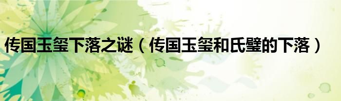 关于传国玉玺下落之谜,传国玉玺和氏璧的下落这个很多人还不知道,今天菲菲来为大家解答以上的问题,现在让我们一起来看看吧!