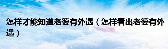 关于怎样才能知道老婆有外遇,怎样看出老婆有外遇这个很多人还不知道,今天菲菲来为大家解答以上的问题,现在让我们一起来看看吧!