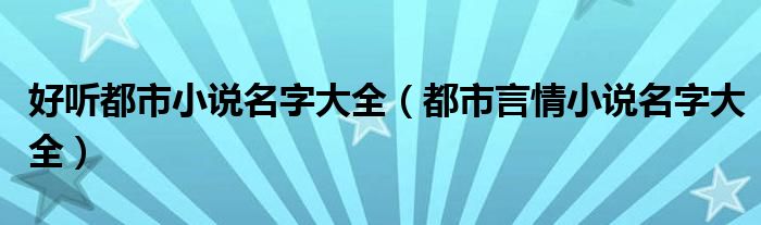关于好听都市小说名字大全,都市言情小说名字大全这个很多人还不知道,今天菲菲来为大家解答以上的问题,现在让我们一起来看看吧!