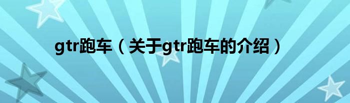 大家好,小都来为大家解答以上的问题。gtr跑车,关于gtr跑车的介绍很多人还不知道,现在让我们一起来看看吧!
