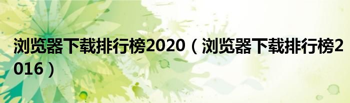 浏览器下载排行榜2020(浏览器下载排行榜2016)