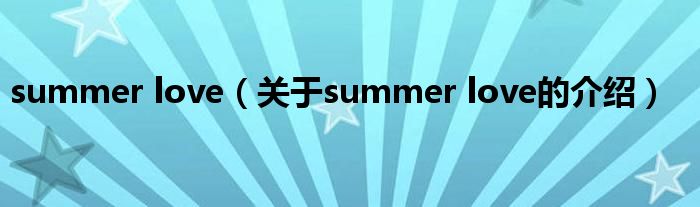 大家好,小都来为大家解答以上的问题。summer love,关于summer love的介绍很多人还不知道,现在让我们一起来看看吧!