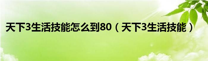 天下3生活技能怎么到80,天下3生活技能这个很多人还不知道,小飞来为大家解答以上的问题。现在让我们一起来看看吧!