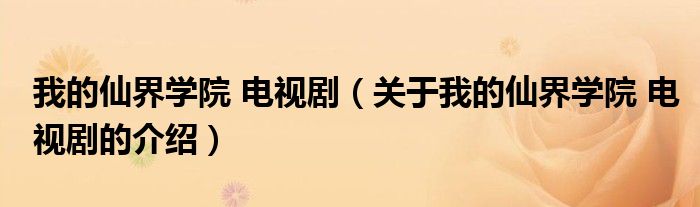 大家好,小都来为大家解答以上的问题。我的仙界学院 电视剧,关于我的仙界学院 电视剧的介绍很多人还不知道,现在让我们一起来看看吧!