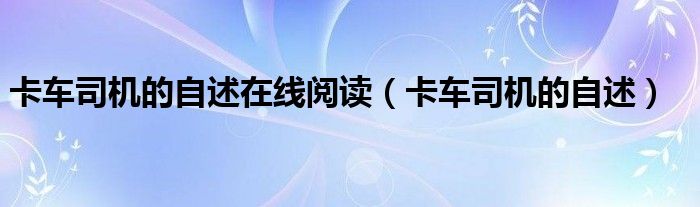卡车司机的自述在线阅读,卡车司机的自述这个很多人还不知道,小飞来为大家解答以上的问题。现在让我们一起来看看吧!