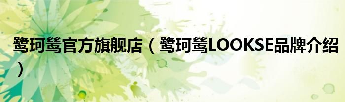 大家好,小源来为大家解答以上问题。鹭珂鸶官方旗舰店,鹭珂鸶LOOKSE品牌介绍很多人还不知道,现在让我们一起来看看吧!