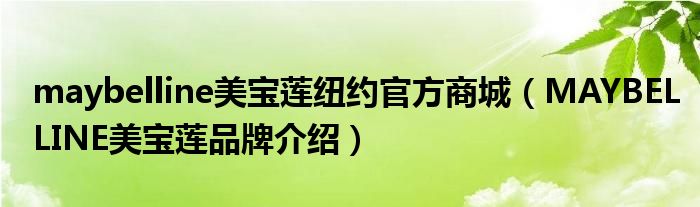 大家好,小源来为大家解答以上问题。maybelline美宝莲纽约官方商城,MAYBELLINE美宝莲品牌介绍很多人还不知道,现在让我们一起来看看吧!