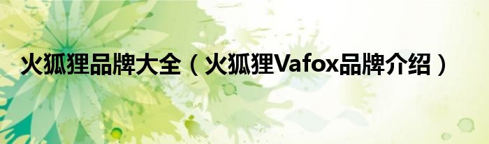 大家好,小源来为大家解答以上问题。火狐狸品牌大全,火狐狸Vafox品牌介绍很多人还不知道,现在让我们一起来看看吧!