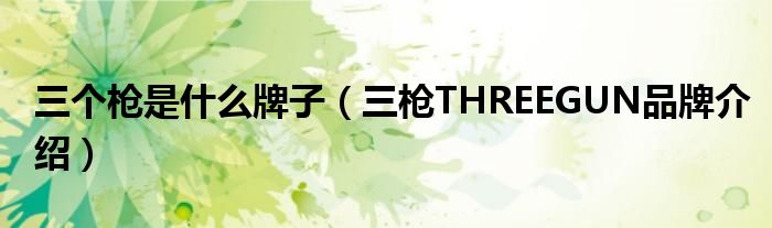 大家好,小源来为大家解答以上问题。三个枪是什么牌子,三枪THREEGUN品牌介绍很多人还不知道,现在让我们一起来看看吧!