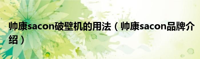 帅康sacon破壁机的用法(帅康sacon品牌介绍)