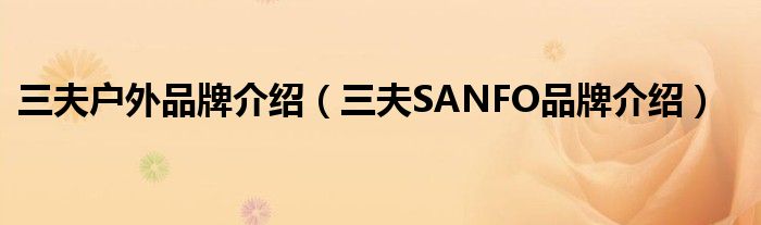 大家好,小源来为大家解答以上问题。三夫户外品牌介绍,三夫SANFO品牌介绍很多人还不知道,现在让我们一起来看看吧!