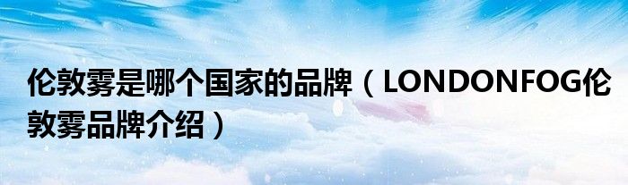 大家好,小源来为大家解答以上问题。伦敦雾是哪个国家的品牌,LONDONFOG伦敦雾品牌介绍很多人还不知道,现在让我们一起来看看吧!