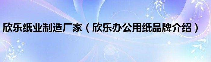 大家好,小源来为大家解答以上问题。欣乐纸业制造厂家,欣乐办公用纸品牌介绍很多人还不知道,现在让我们一起来看看吧!