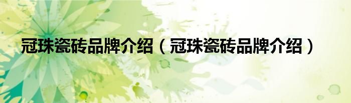 大家好,小源来为大家解答以上问题。冠珠瓷砖品牌介绍,冠珠瓷砖品牌介绍很多人还不知道,现在让我们一起来看看吧!