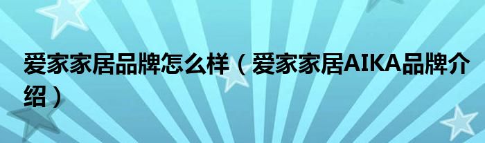 大家好,小源来为大家解答以上问题。爱家家居品牌怎么样,爱家家居AIKA品牌介绍很多人还不知道,现在让我们一起来看看吧!