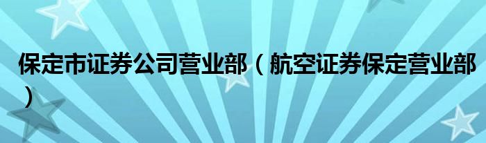 保定市证券公司营业部,航空证券保定营业部这个很多人还不知道,小飞来为大家解答以上的问题。现在让我们一起来看看吧!