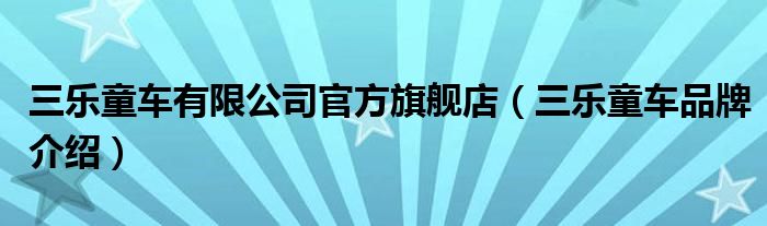 大家好,小源来为大家解答以上问题。三乐童车有限公司官方旗舰店,三乐童车品牌介绍很多人还不知道,现在让我们一起来看看吧!