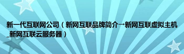 大家好,小源来为大家解答以上问题。新一代互联网公司,新网互联品牌简介→新网互联虚拟主机_新网互联云服务器很多人还不知道,现在让我们一起来看看吧!