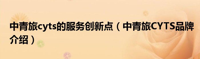 大家好,小源来为大家解答以上问题。中青旅cyts的服务创新点,中青旅CYTS品牌介绍很多人还不知道,现在让我们一起来看看吧!