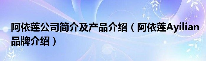 大家好,小源来为大家解答以上问题。阿依莲公司简介及产品介绍,阿依莲Ayilian品牌介绍很多人还不知道,现在让我们一起来看看吧!