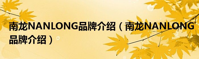 大家好,小源来为大家解答以上问题。南龙NANLONG品牌介绍,南龙NANLONG品牌介绍很多人还不知道,现在让我们一起来看看吧!