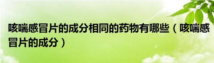 大家好,linda来为大家解答以上的问题。咳喘感冒片的成分相同的药物有哪些,咳喘感冒片的成分很多人还不知道,现在让我们一起来看看吧!