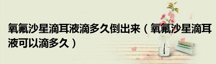 大家好,linda来为大家解答以上的问题。氧氟沙星滴耳液滴多久倒出来,氧氟沙星滴耳液可以滴多久很多人还不知道,现在让我们一起来看看吧!
