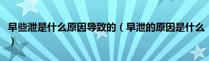 早些泄是什么原因导致的(早泄的原因是什么)