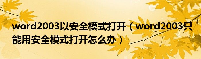 大家好,今天小悦来为大家解答以上问题。word2003以安全模式打开,word2003只能用安全模式打开怎么办很多人还不知道,现在让我们一起来看看吧!