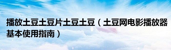大家好,今天小悦来为大家解答以上问题。播放土豆土豆片土豆土豆,土豆网电影播放器基本使用指南很多人还不知道,现在让我们一起来看看吧!