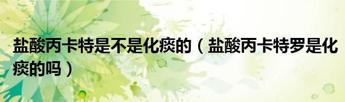 大家好,linda来为大家解答以上的问题。盐酸丙卡特是不是化痰的,盐酸丙卡特罗是化痰的吗很多人还不知道,现在让我们一起来看看吧!