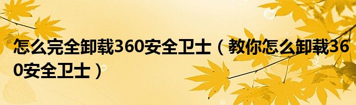 怎么完全卸载360安全卫士(教你怎么卸载360安全卫士)