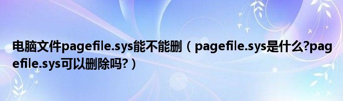 大家好,今天小悦来为大家解答以上问题。电脑文件pagefile.sys能不能删,pagefile.sys是什么?pagefile.sys可以删除吗?很多人还不知道,现在让我们一起来看看吧!